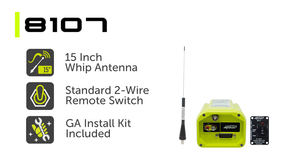 There are now three comprehensive kit options available that provide users with access to the ELT 345, the world’s most popular ELT.  Each option features a 2-wire remote switch, coax cable, antenna, and ELT installation kit.  The primary difference between the kits pertains to the antenna and/or switch offering.  Our most economical option (part number 8102), comes with our standard black whip antenna and standard 2-wire remote switch.  The other two kits include a lower profile antenna option featuring a black whip antenna designed for installations where a shorter form factor is required.  Lastly, while the 8102 and 8107 kits include the standard 2-wire remote switch, the 8108 kit features a new slim profile switch.  The new slim switch is perfect for ACK and Ameri-King ELT retrofits as it requires no modification to the switch panel cut-out when replacing a legacy phone cord style switch.  As an added benefit, the slim switch requires no batteries and operates using 2 wire connectivity for dependable cockpit panel operation.