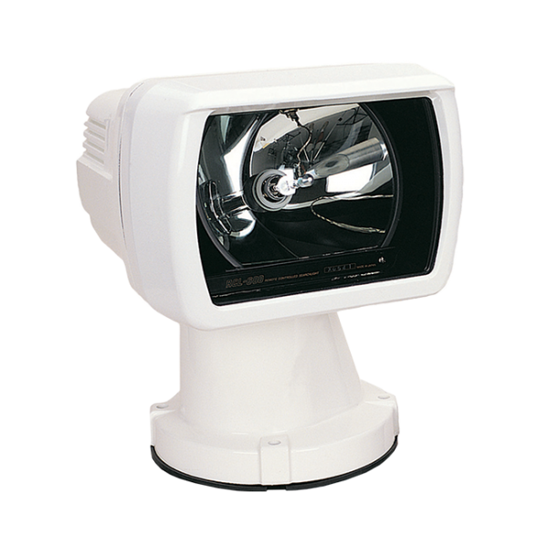 The rugged powder-coated aluminum searchlight with all internal/protected motors and elevation mechanisms will stand up to the tough marine environment for years of useful service