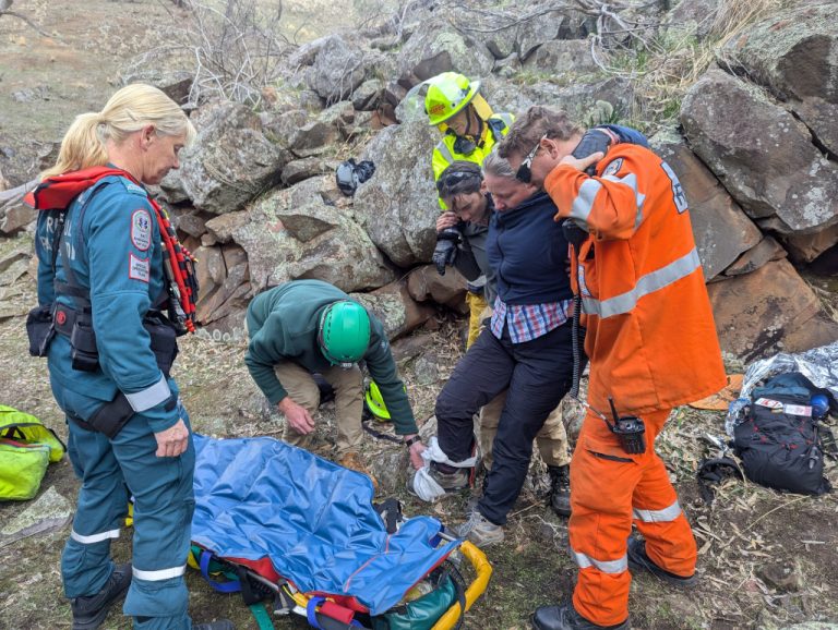 They decided to call a helicopter from Adelaide because carrying me out by stretcher would be very difficult. They made me comfortable with another emergency blanket. After 3 hours, paramedics were lowered into the gorge by helicopter. They gave me strong pain relief, placed me in a basket, and winched me about 100 meters into the helicopter.