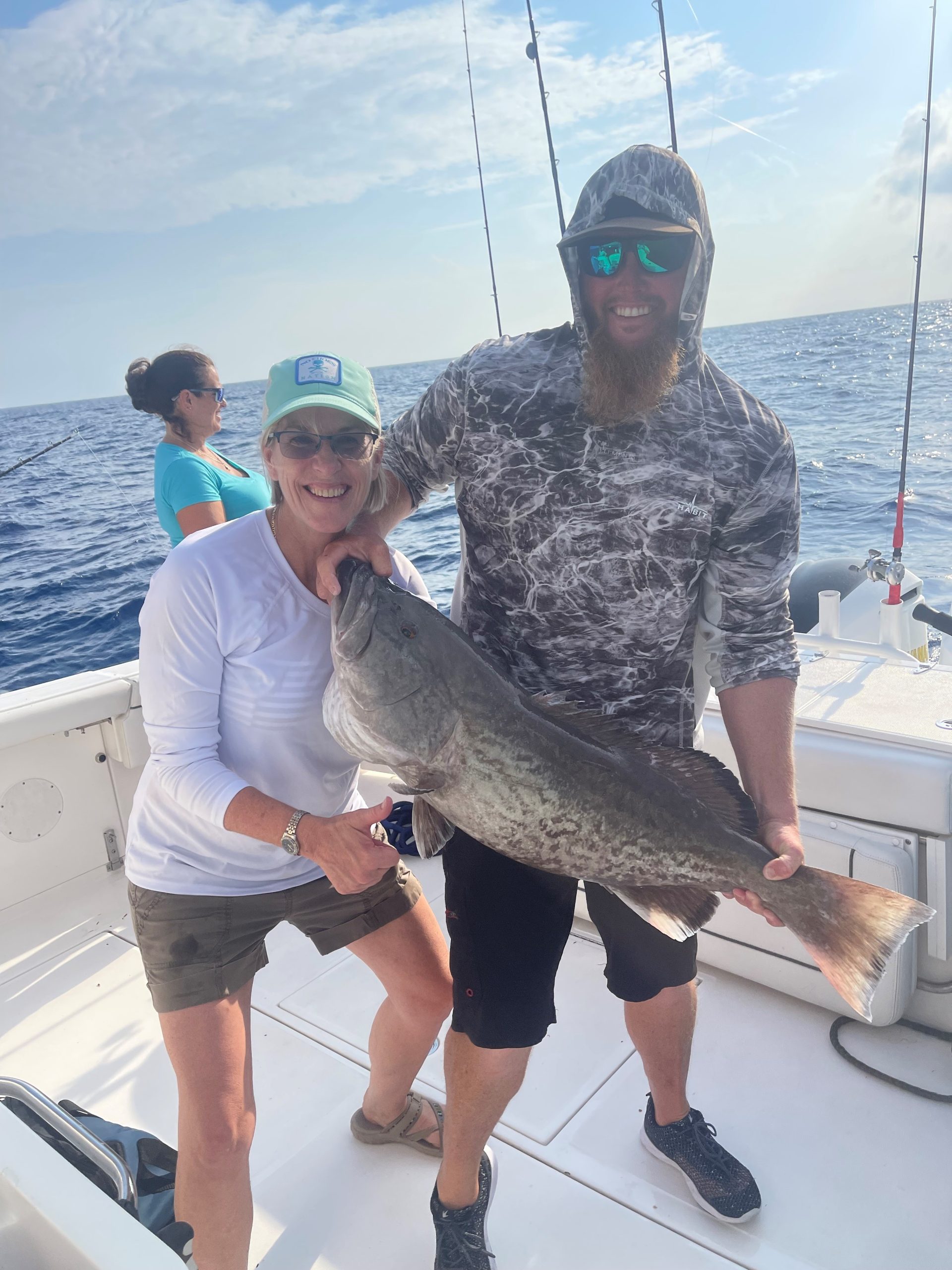 Josh and I started hooking up Baits and handing the rods to the ladies. Andrea was the first to hook up and she pulled in an 18 pound red snapper. . I immediately put the anchor out and got us locked into that spot. At which point all the ladies were pulling in one fish after another. Sherrie caught a 29-pound gag grouper, Hannah caught a 24-pound gag grouper, Tanya caught a 19-pound gag grouper, and then the red grouper bite started. All the ladies started pulling in one red group one after another in the 10-to-15-pound class. They were all whooping and hollering and having a great time.