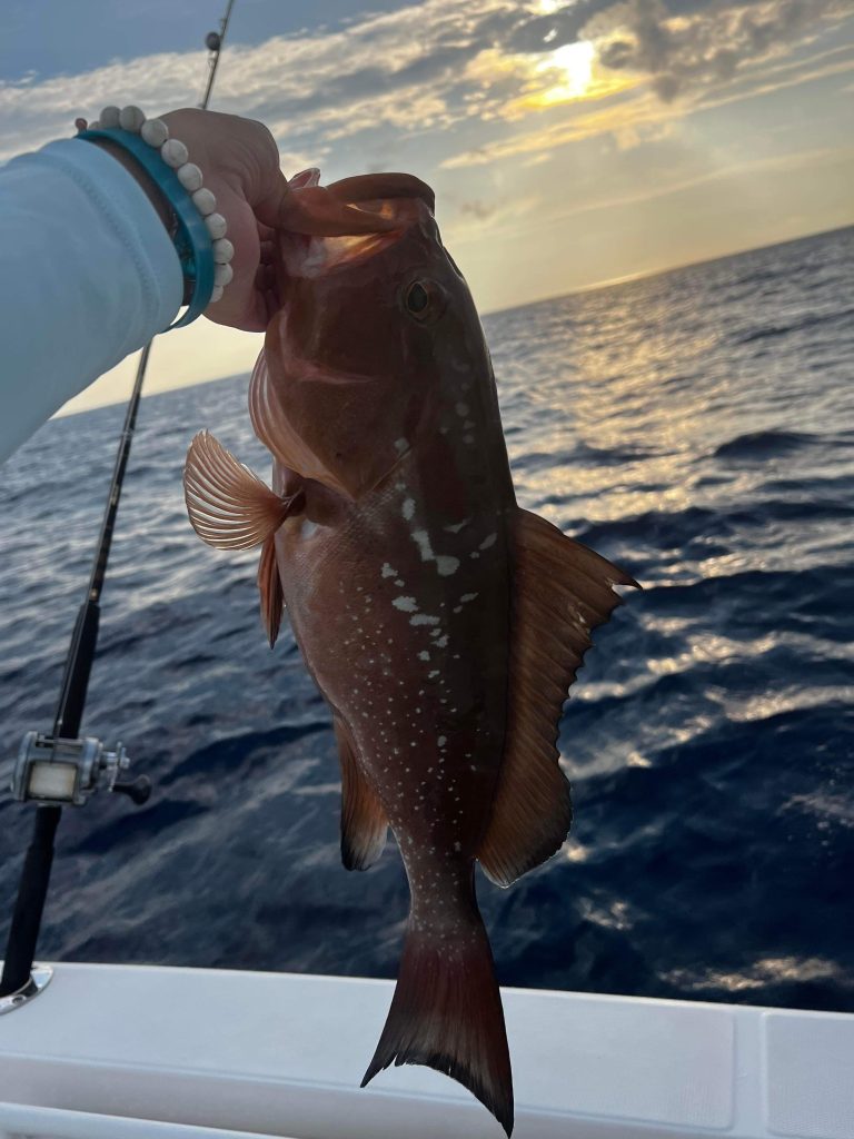 We were going to go 120 miles out to one of my special spots that we called Jurassic Park (due to the number and size of the fish that can be caught there). So, at 2:00 o’clock in the morning, we loaded into the big boat and started the three and a half hour venture out to Jurassic Park.