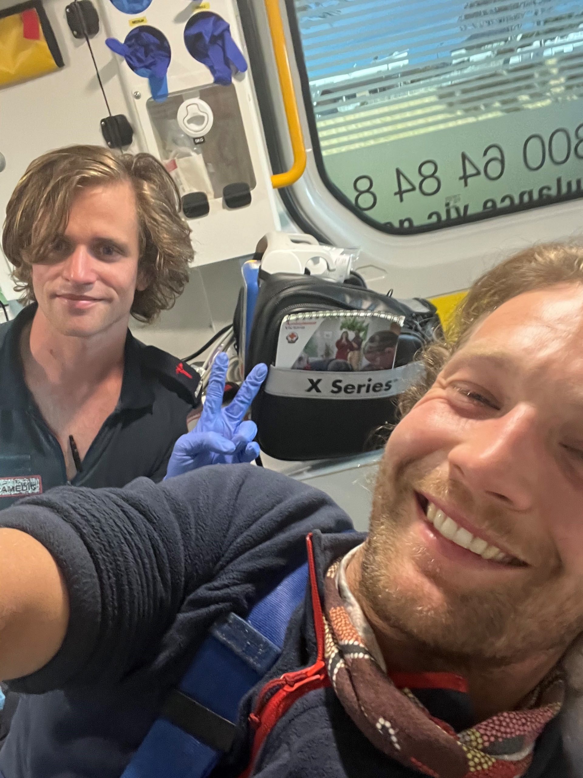I tried to find the source of bleeding, cleaning the area thoroughly, and discovered a 1 mm x 1 mm puncture wound on my calf, oozing blood. I am a doctor by training and have treated several patients with snake bites before. I reasoned that the bite was either a leech or a snake. It was hot and I hadn’t seen a single leech the entire hike, and the wound also looked different to previous leech bites I have had while hiking. With this information, and given how many snakes are found in this part of Victoria, I decided I had to treat the wound as a snake bite.