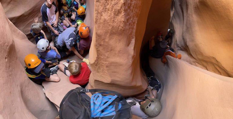 We took a group of 17 young men and 3 adults on a multiple day campout that would include several slot canyon hikes with rappelling. On day 2 of the camp, we mixed up directions and entered into a slot canyon different than what we had planned and little did we know, this was an “impossible” canyon to pass. About 2 hours into the canyon, we realized we had gotten ourselves stuck with no way forward or back. Thank goodness we were carrying a personal locator beacon.